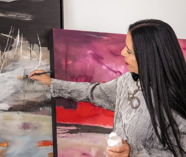 Isel Lübke-Rivera malt seit über 30 Jahren und verbindet in ihrer Arbeit traditionelle künstlerische Techniken mit modernem Design. Ihre langjährige Erfahrung erstreckt sich über Malerei, Dekorentwicklung und Objektgestaltung, geprägt von einem internationalen Werdegang und einem tiefen Verständnis für Materialien und Formen. Die Künstlerin schafft expressive Werke, die sowohl farblich als auch inhaltlich vielschichtig sind und sich im Spannungsfeld von Kunst und Handwerk bewegen.